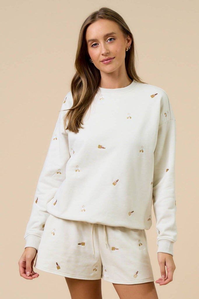 Loungewear meets elevated style in this ultra-comfy French terry set, designed with delicate embroidery for a chic, laid-back vibe. Soft, breathable, and effortlessly stylish, the set includes a cozy top and matching bottoms-perfect for everything from casual days out to relaxed weekends in. The embroidered detailing adds a touch of charm to this everyday essential.